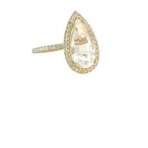 Erica Courtney 18k yellow gold pear shaped Moonstone and diamond ring 4.65tw