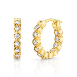 Erica Courtney 18k yellow gold bezel set inside out bezel set huggie e
