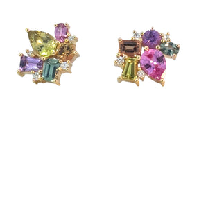 Erica Courtney 18k yellow gold multi color fancy sapphire cluster earring 2.52tw