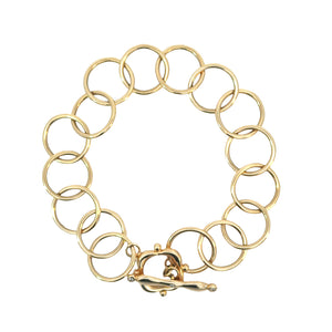 Erica Courtney 18k yellow gold super cool round link bracelet with flower toggle 7.5'