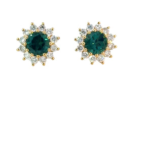 Erica Courtney 18k yellow gold Lagoon tourmaline cluster stud earrings 3.22tw