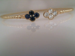 Sabrina 14k yellow gold flexible diamond and blue sapphire clover open