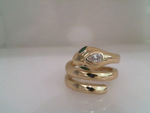 Sabrina 14k yellow gold diamond and emerald snake wrap ring