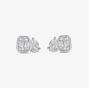 Sabrina 14k white gold pear and emerald cut diamond stud earrings