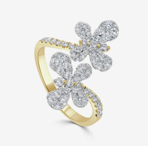 Sabrina 14k yellow gold double diamond butterfly bypass ring .97tw