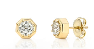 Single Stone 18k yellow gold Lola OEC diamond stud earrings 1.17/1.20