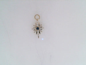 Three Stories 14k yellow gold Single Open Evil Eye sapphire charm