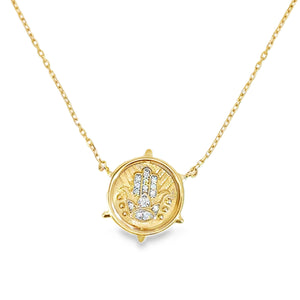 Three Stories Jewelry 14k yellow gold Hamsa and Star of David flip nec
